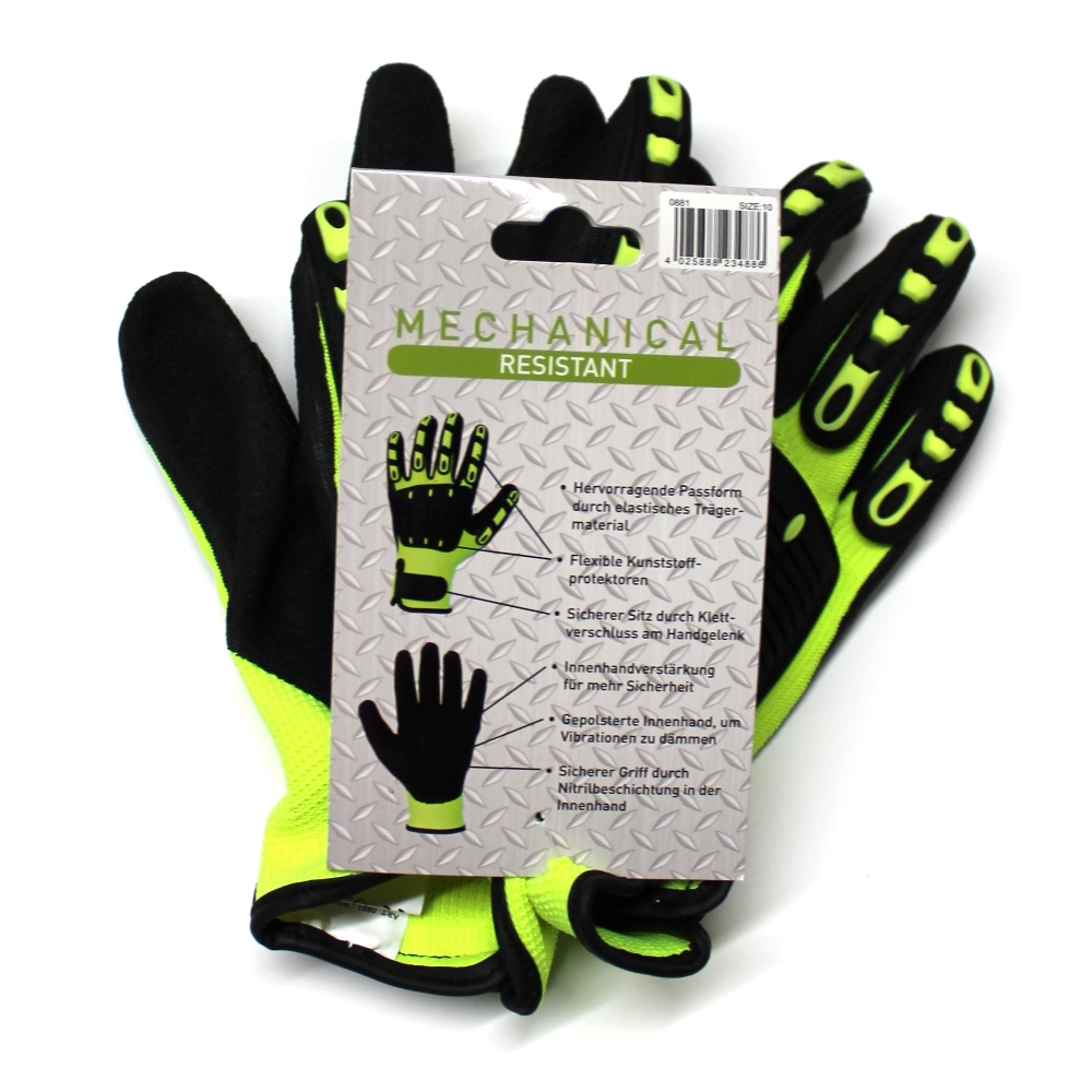 Material: Kunstfaser, Handrücken und Fingerschutz aus flexiblem Vinyl