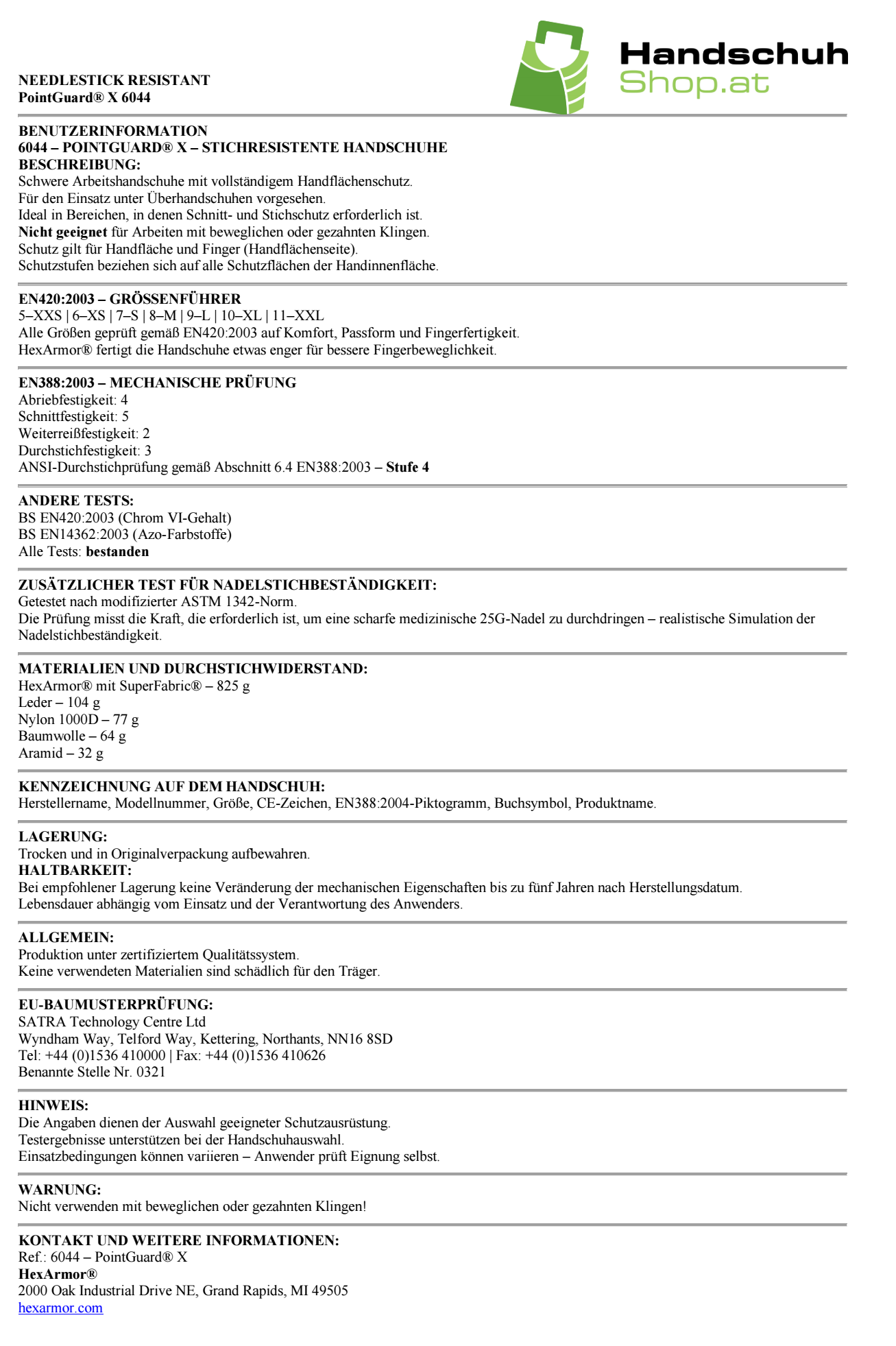 Die HexArmor® PointGuard® X 6044 sind hochwertige, stich- und schnittfeste Arbeitshandschuhe, entwickelt für maximale Sicherheit bei gefährlichen Tätigkeiten.